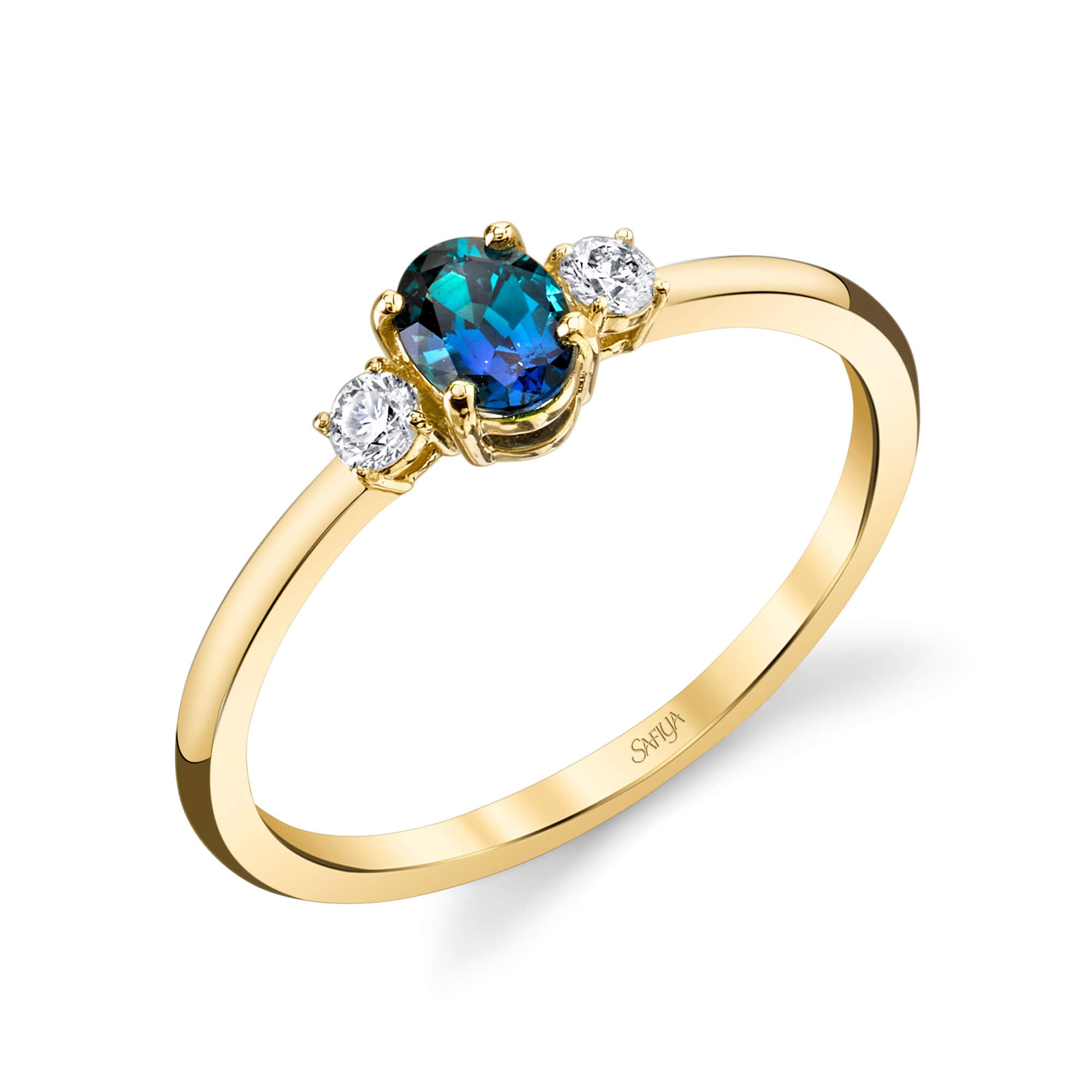 This beautiful and understated design features a choice of pure Brazilian Alexandrite and sparkling Diamonds set delicately on the sides of the center stone. Our design team have thoughtfully designed this ring with an slim band to celebrate the timeless love between yourself and your loved one while still giving a contemporary twist on the 3 stone classic. Add this piece to your layers and get some extra Oomph!