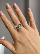This 18K White Gold ring is an artful ring design expertly crafted featuring two butterflies. Each butterfly is set with rare marquise shaped alexandrites and diamonds respectively. This piece is sure to turn heads, a truly one-of-a-kind piece.
