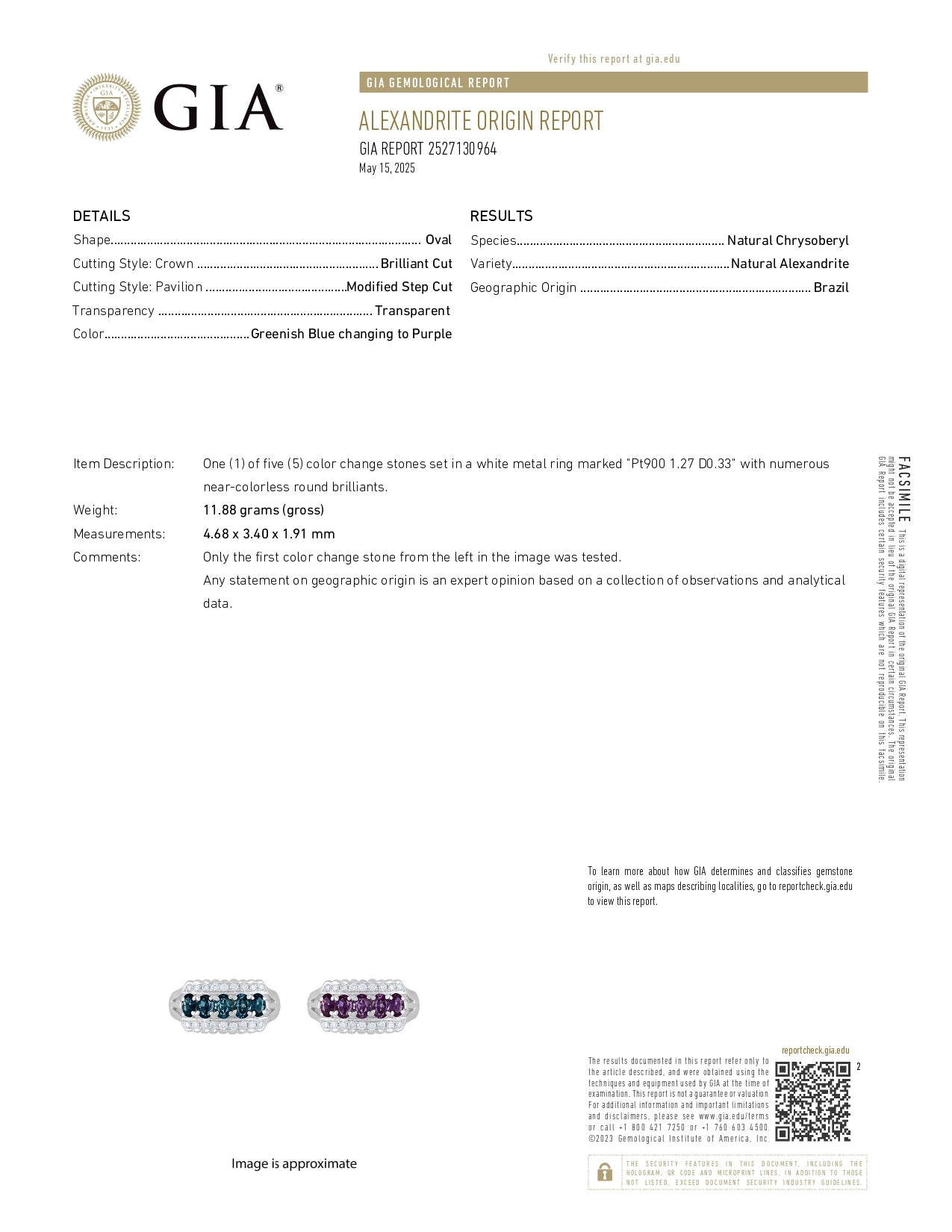 This ring is accompanied by a GIA Alexandrite Origin Report, confirming authenticity and Brazilian origin for complete confidence.