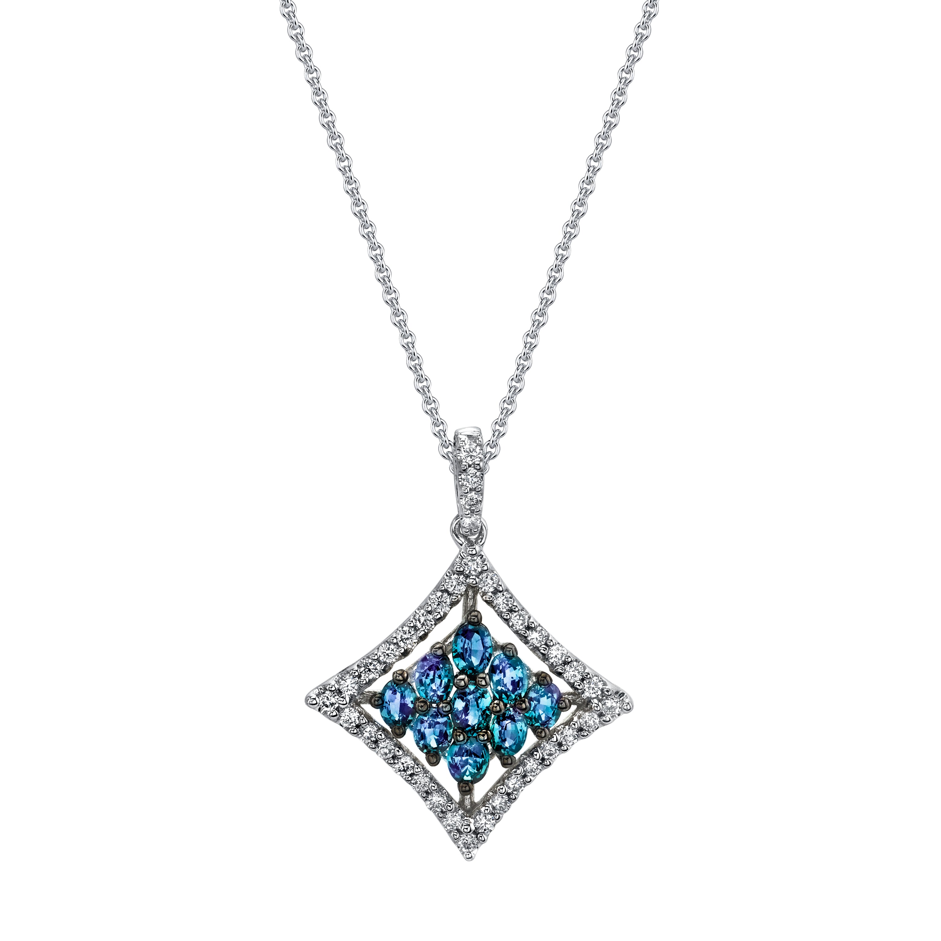 Curved Dangling Diamond - 18K White Gold Natural Alexandrite Pendant