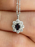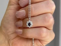 This elegant pendant featuring a 0.28ct natural alexandrite center stone surrounded by diamonds is the perfect piece for a birthday gift or a special occasion. Match this with one of our halo rings.