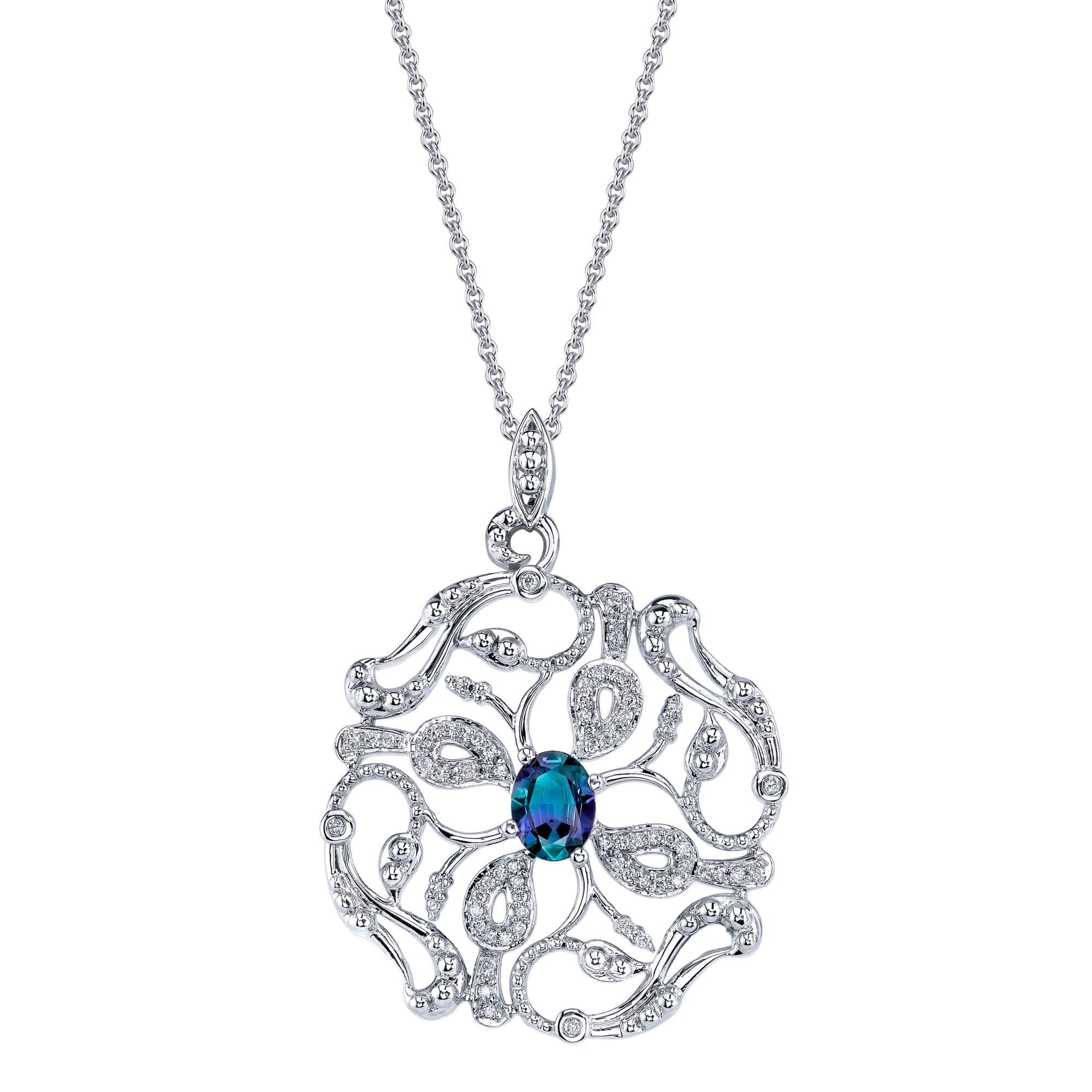 Forest - 14K White Gold Natural Alexandrite Pendant