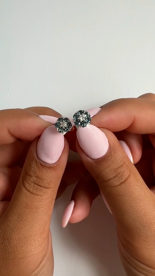 Designed to sit perfectly flush against the lobe, these Alexandrite and Diamond cluster studs sits on the 18K White Gold casing without any prongs. Crafted with a single Diamond at their center and 100% natural Alexandrites in a floral pattern these earrings are dazzling. Wear these by day or by night to show off the Alexandrite's' color-change ability! Perfect for gifting and everyday wear.