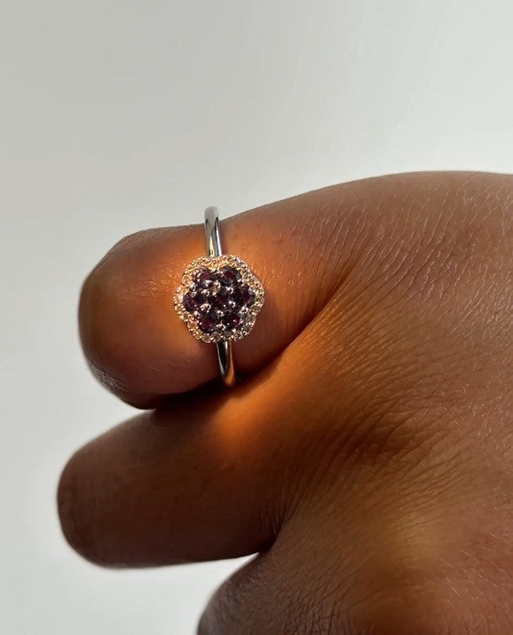 The Moonlight Halo Ring is a timeless expression of elegance, designed to let a rare gemstone take center stage. Crafted in luminous 18K white gold, this refined ring features a cluster of natural Brazilian alexandrite weighing 0.52 carats, encircled by a delicate halo of brilliant natural diamonds totaling 0.11 carats.